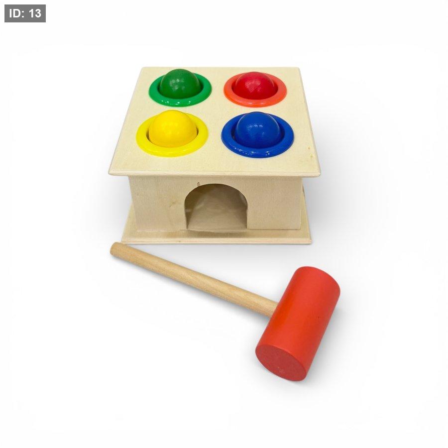 يستخدم الطفل المطرقة لضرب الطابات الصغيرة في الفتحات المخصصة، مما يعزز التنسيق بين اليد والعين ويساعده على تفريغ طاقته في نشاط إيجابي. إنها ليست مجرد لعبة، بل أداة لتطوير المهارات الحركية والتفكير السريع