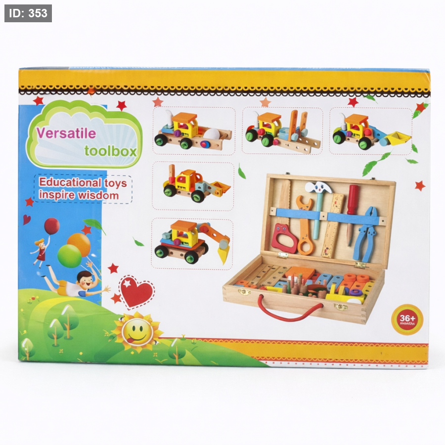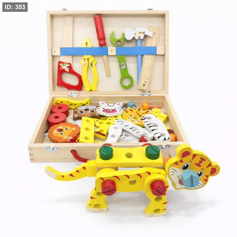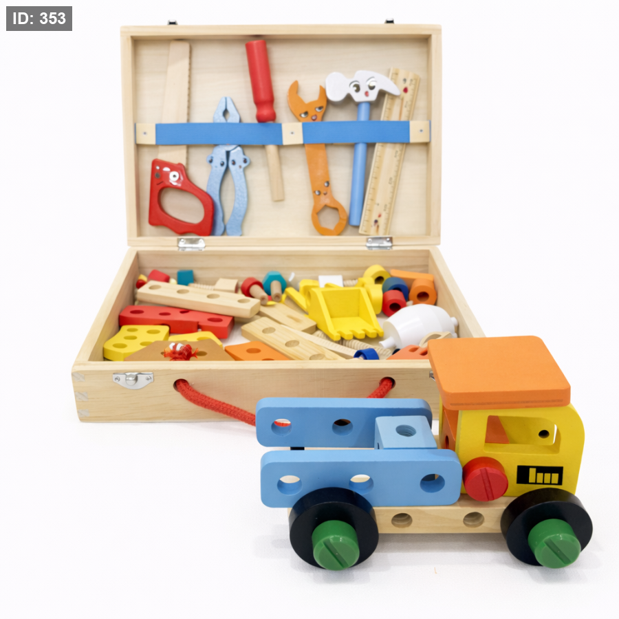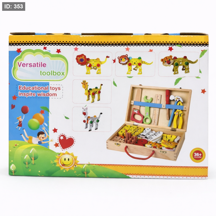 لعبة خشبية تعليمية متعددة الاستخدامات، مصممة خصيصًا لتنمية مهارات الإبداع والتفكير عند الأطفال. تحتوي على مجموعة متنوعة من الأدوات: براغي، مفكات، قطع خشبية، وأشكال قابلة للتركيب تساعد الطفل على بناء مركبات مثل السيارة والجرافة، أو تشكيل حيوانات مثل النمر، الأسد، الحمار الوحشي وغيرها
