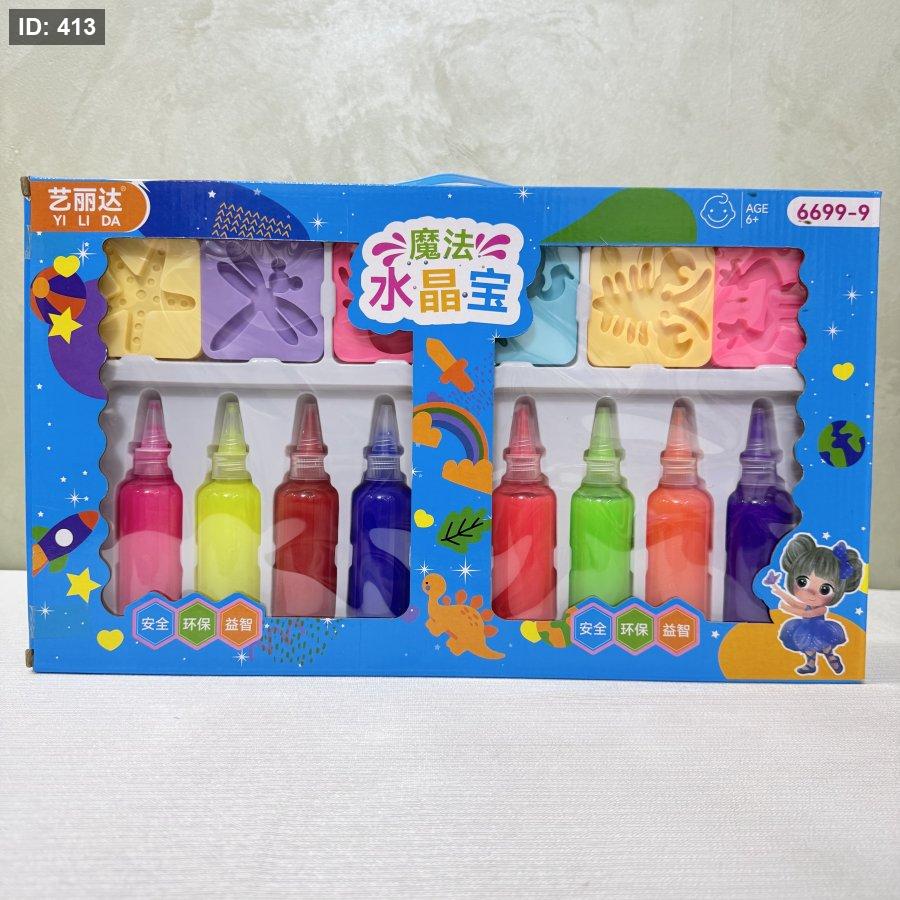 خلي طفلك يعيش تجربة ممتعة مليانة ألوان وأشكال مدهشة! بس عبّي القالب بالجل، ضيفوا المادة للمي غمّسوه بالمي، و… شوفوا السحر قدام عيونكم 😍