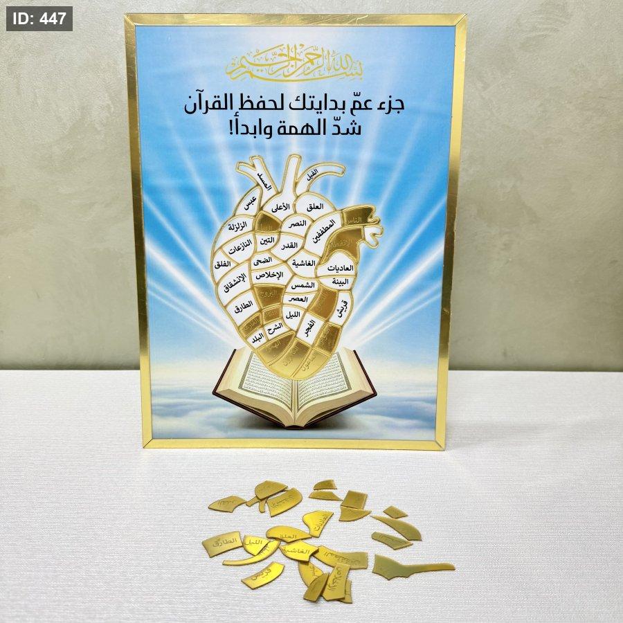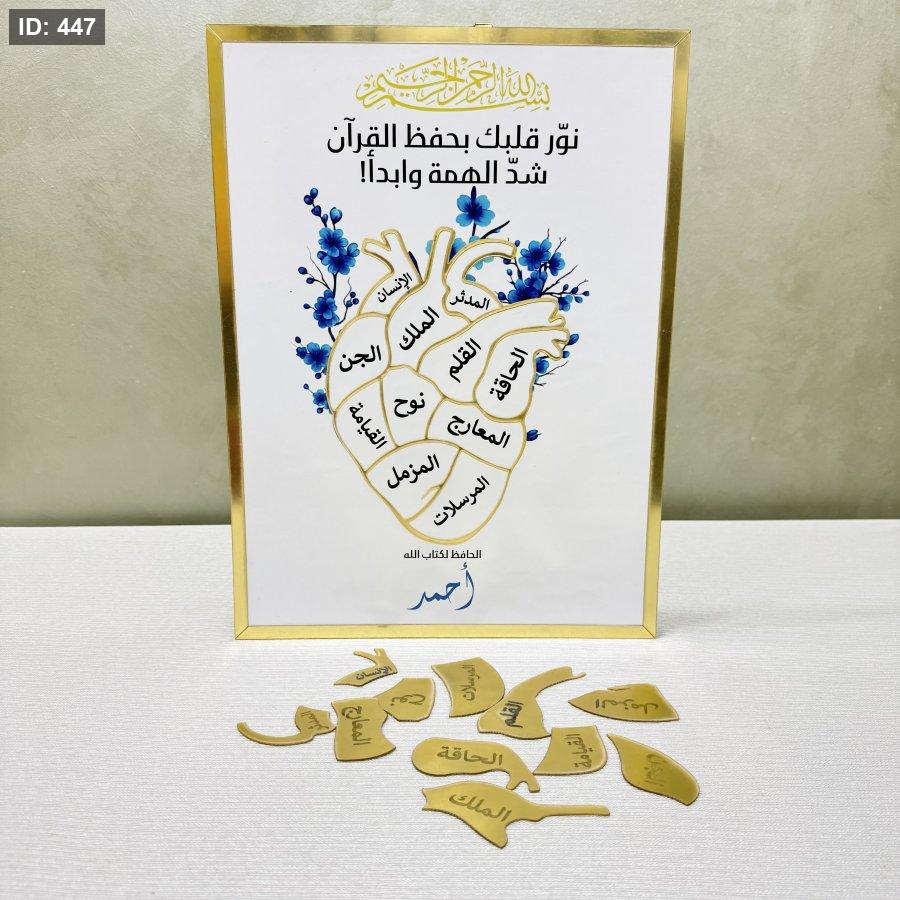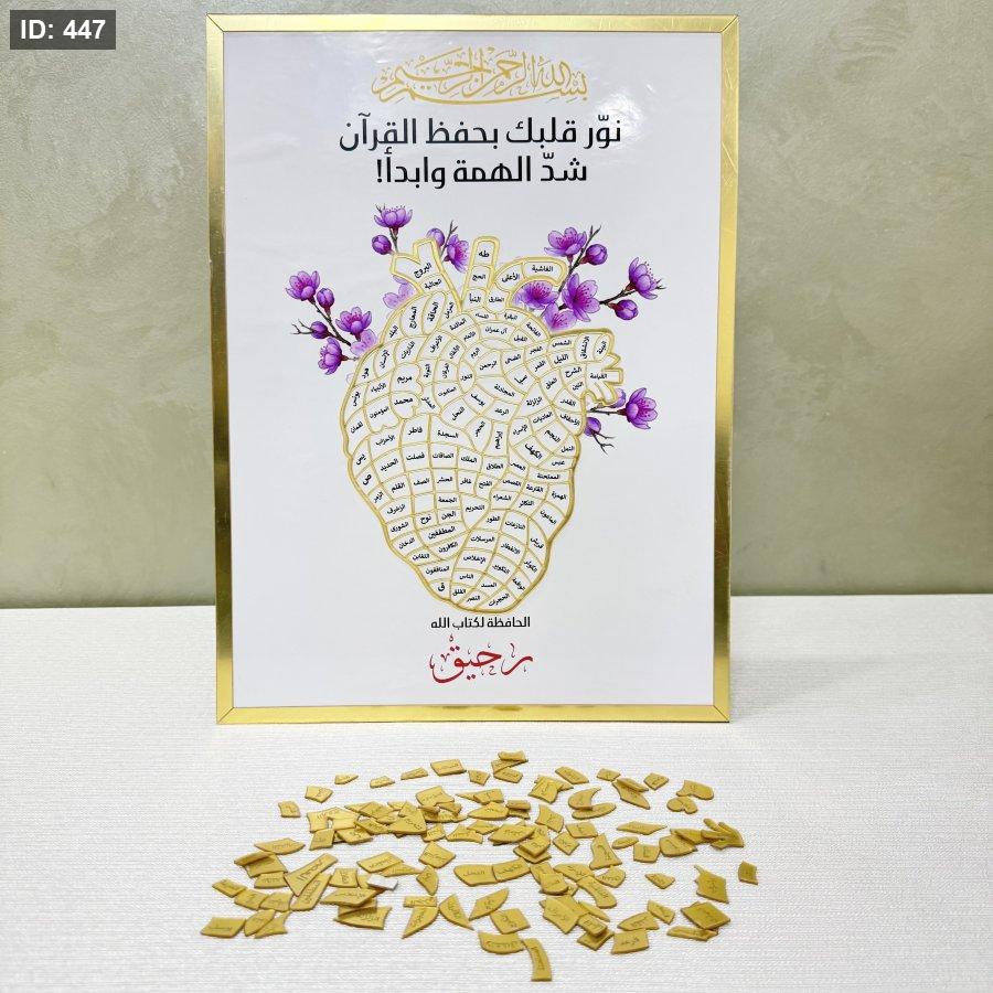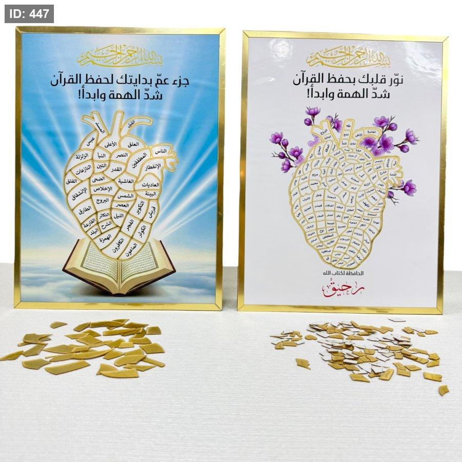 فكرة جديدة ومميزة بتحوّل رحلة الحفظ لتجربة ممتعة ومليانة تحفيز 🤍 الطفل كل ما يحفظ سورة… بيركب القطعة الخاصة فيها على شكل قلب، ولما يكتمل الحفظ، بيكتمل القلب بنور القرآن 💖🌿
