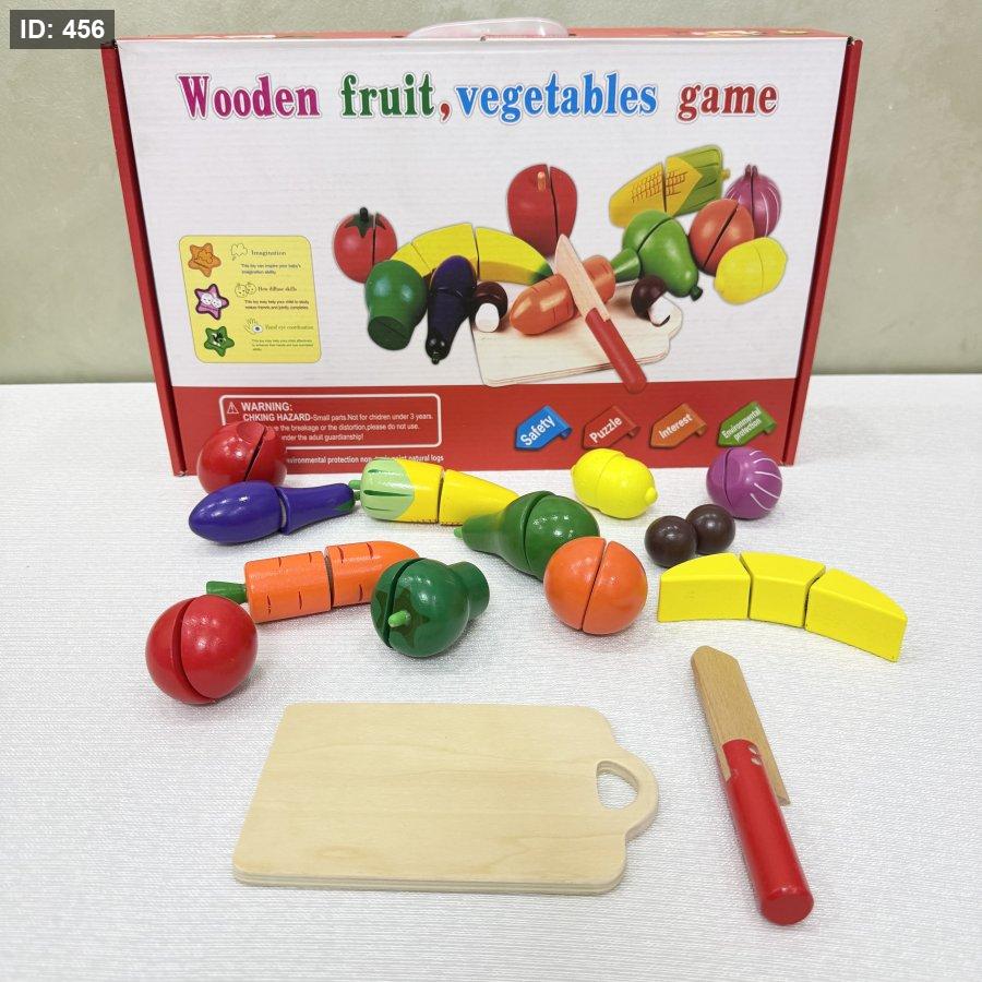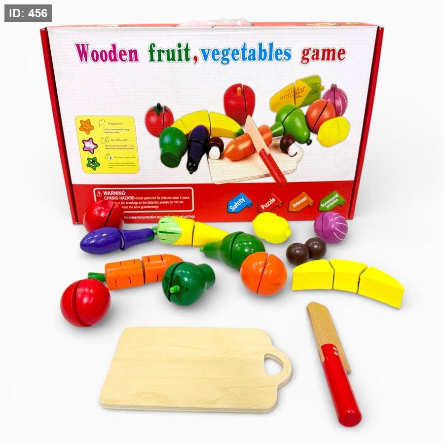 •محتويات اللعبة: 15قطعة خشب (حسب التشكيلة) تشمل فواكه متنوعة + سكين خشبي آمن.