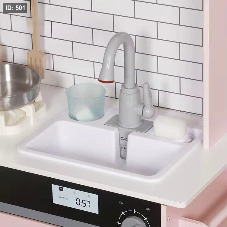 تُصدر المقابض الموجودة على الموقد صوت "طقطقة" عند تدويرها، ويحتوي الشفاط والموقد على تأثيرات ضوئية وصوتية واقعية (تعمل بالبطاريات).