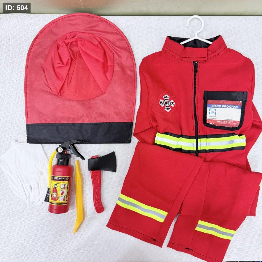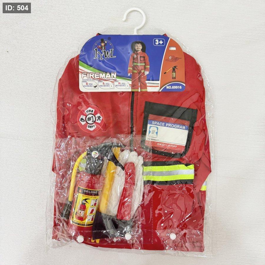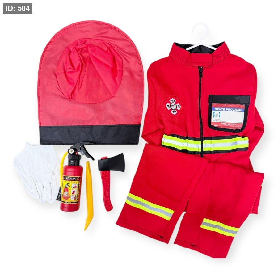 الطقم يتكوّن من أفرهول كامل باللون الأحمر مريح وسهل الارتداء، مصمم ليمنح الطفل حرية الحركة أثناء اللعب التخيلي.