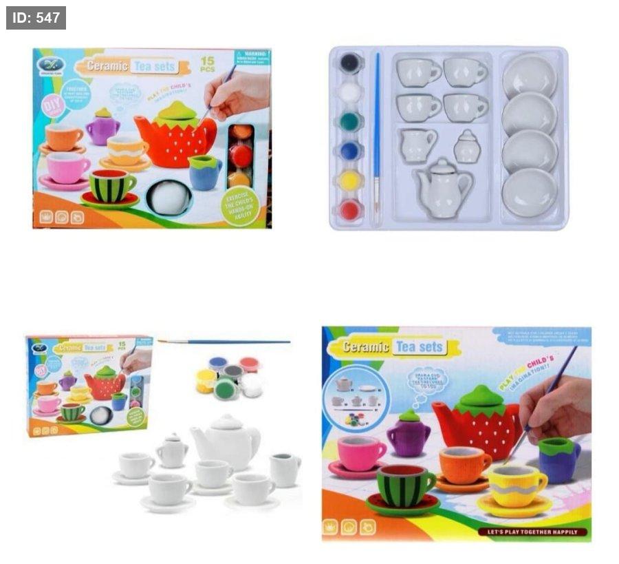 يتكوّن الطقم من 15 قطعة تشمل بريق شاي، كاسات شاي، وإكسسوارات لعب، بحجم مناسب للأطفال وخامة آمنة للاستخدام. بعد التلوين، يستطيع الطفل استخدام الطقم في لعبه التخيلي وحفلات الشاي الممتعة.