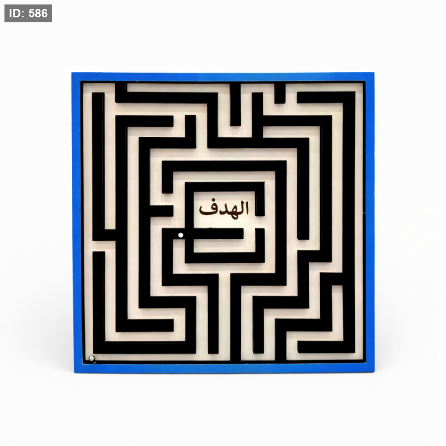 •كرة معدنية فضية تتحرك داخل المتاهة