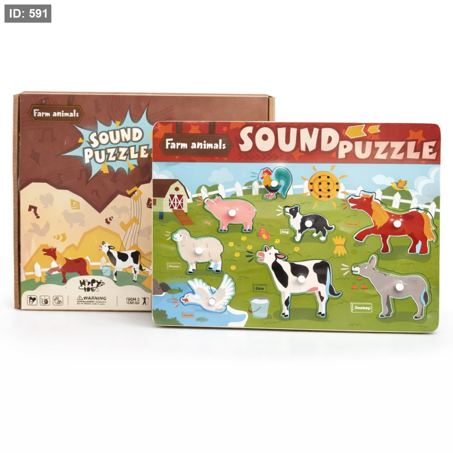 يساعد الطفل على التعرف على حيوانات المزرعة من خلال تركيب القطع وسماع الصوت الحقيقي لكل حيوان عند وضعه في مكانه الصحيح، مما يعزز الربط بين الصورة والصوت.