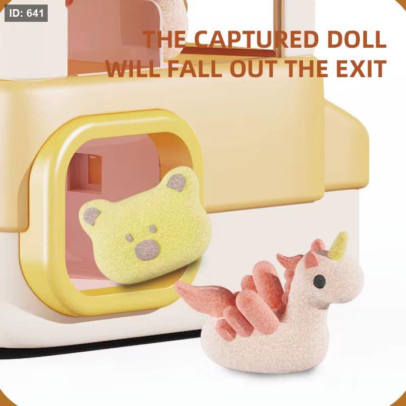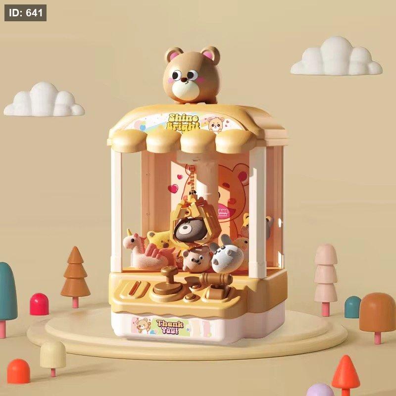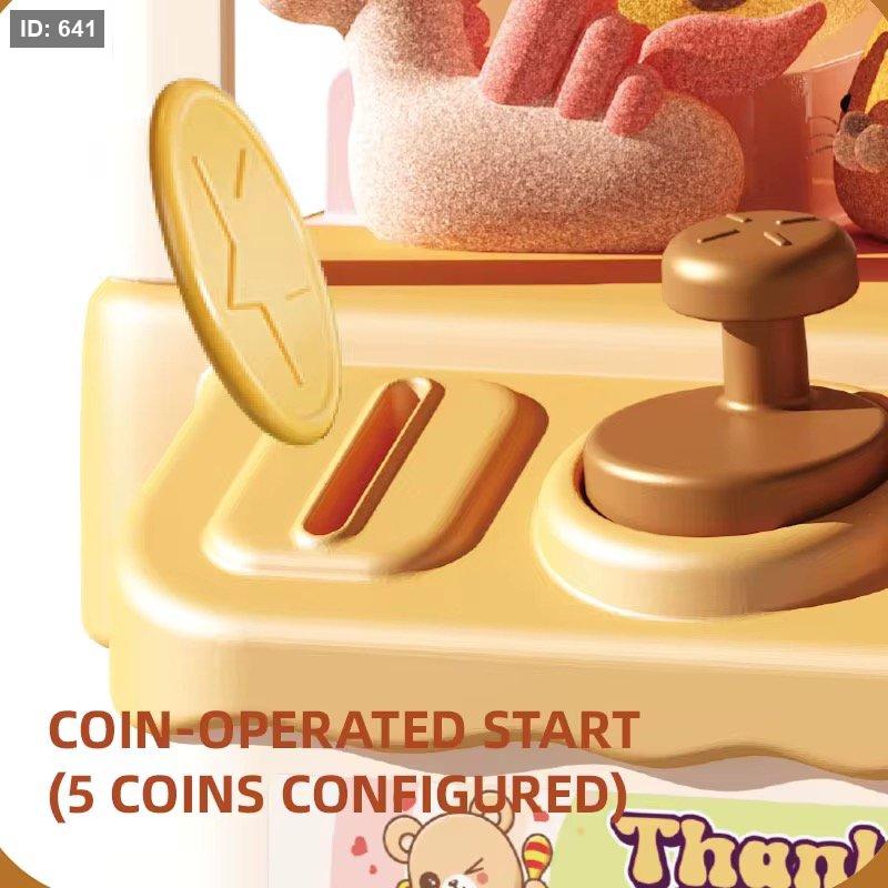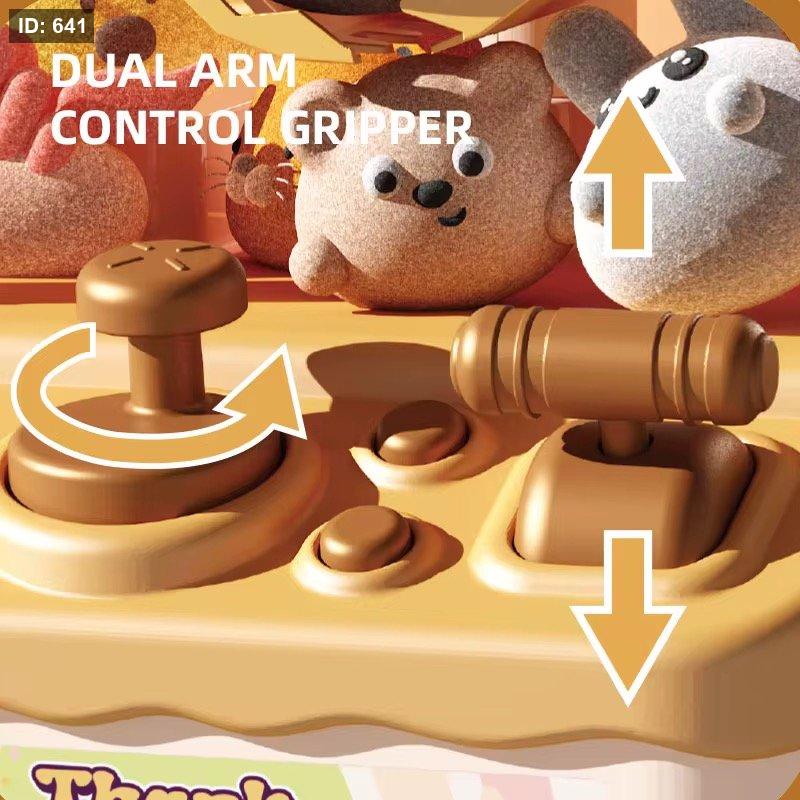 تحتوي الماكينة على دمى صغيرة بداخلها، ويمكن للطفل التحكم بذراع الالتقاط لمحاولة الفوز بها، مما يعزز روح التحدي والتركيز بطريقة ممتعة وآمنة.