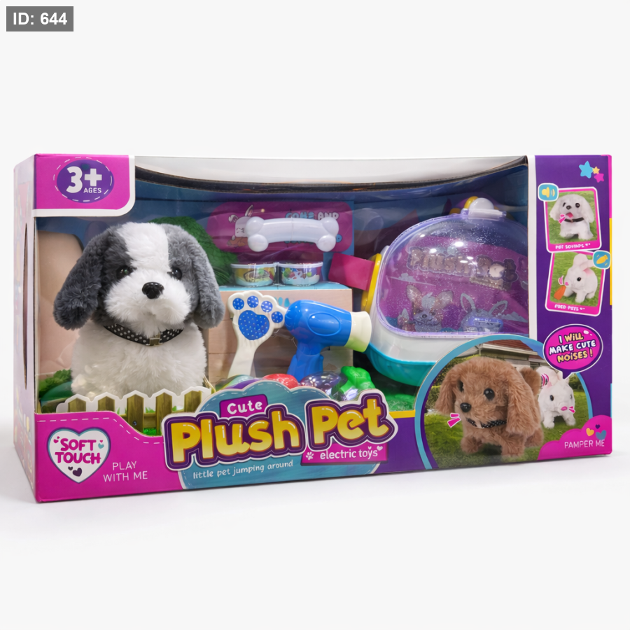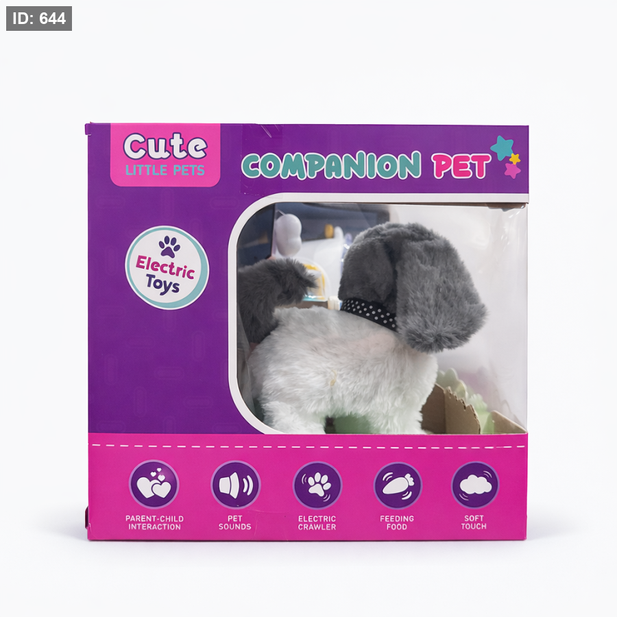 لعبة على شكل جرو فرو ناعم بتفاصيل محببة للأطفال، يصدر أصواتًا لطيفة ويتحرك بطريقة تفاعلية تضيف واقعية ومتعة أثناء اللعب. مصمم ليكون رفيقًا صغيرًا لطفلك، يعزز مشاعر العناية والاهتمام بالحيوانات بطريقة آمنة وممتعة.