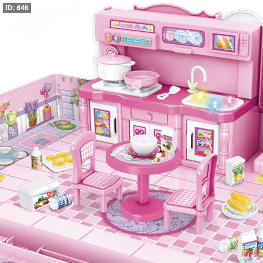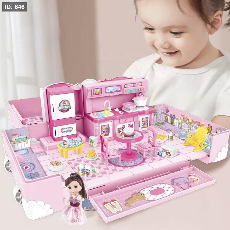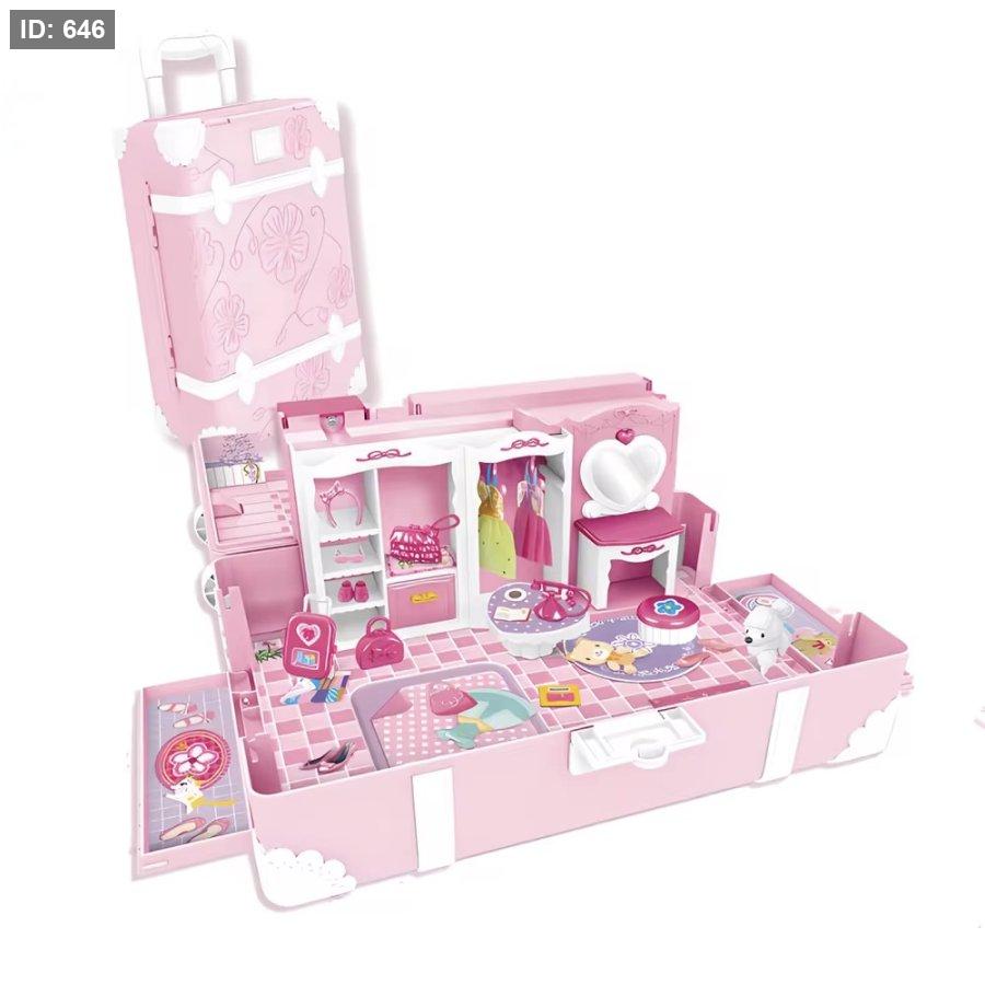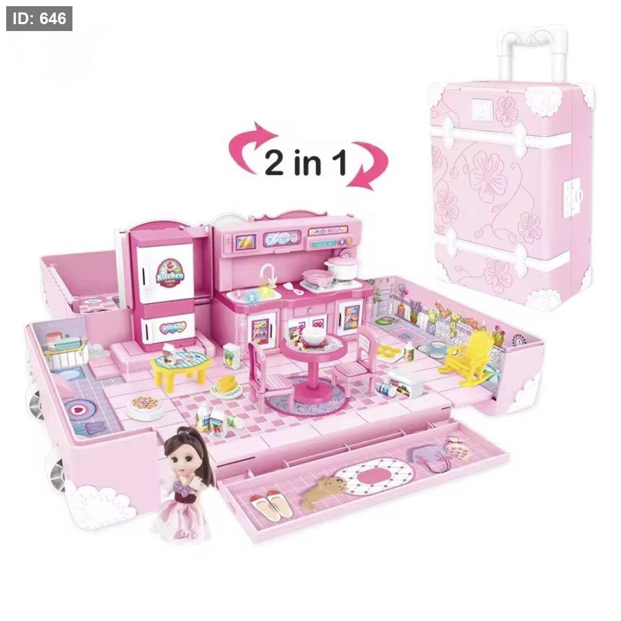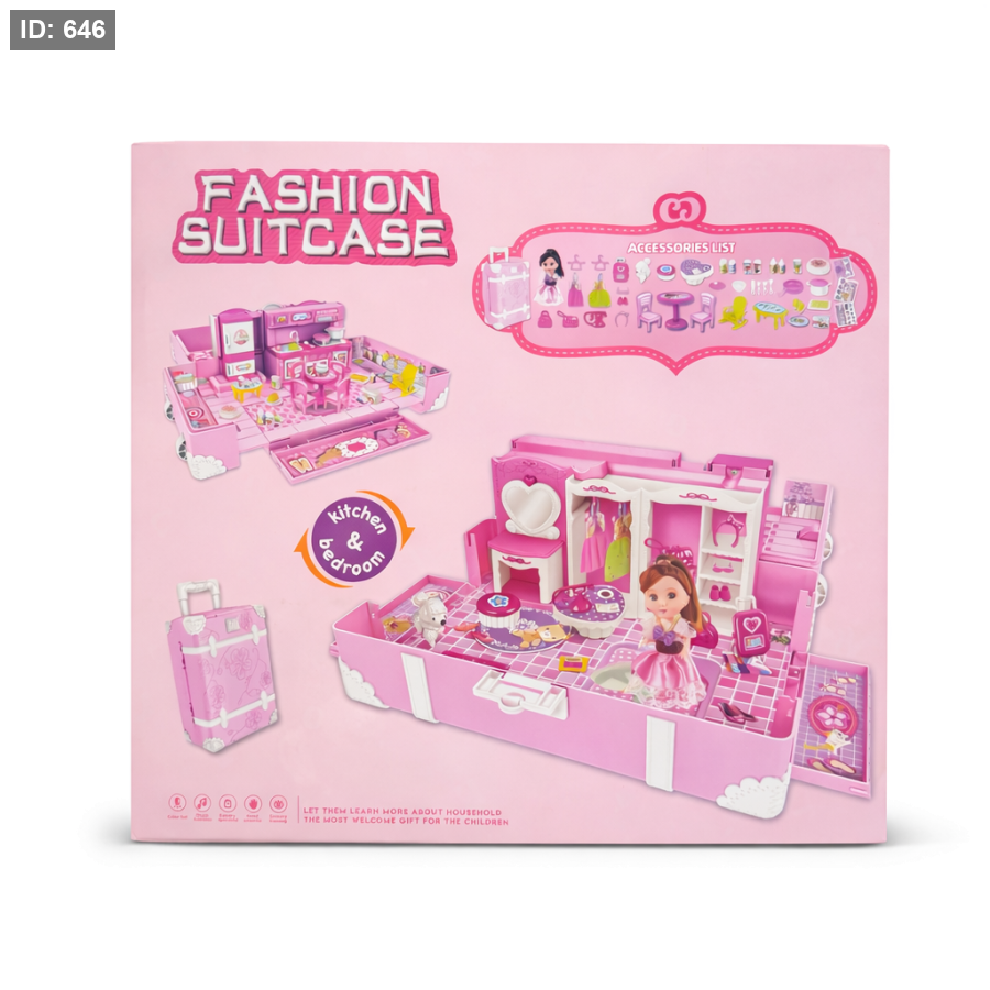 يمكن للطفلة فتح الحقيبة وتحويلها إلى مساحة لعب مليئة بالتفاصيل، ثم إغلاقها بسهولة وحملها مثل حقيبة سفر، مما يجعلها مثالية للعب في المنزل أو أثناء الزيارات والسفر.