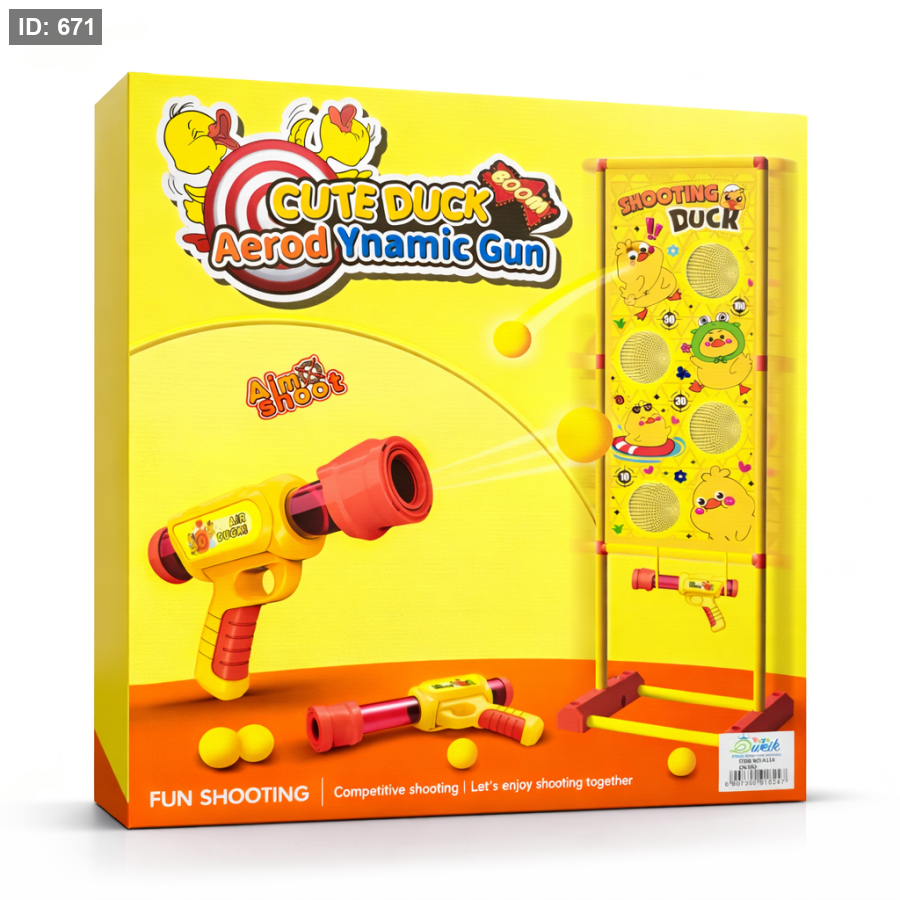 تصميم اللعبة ملون وجذاب مع شخصية البط اللطيفة، مما يجعلها لعبة مثالية لتنمية التركيز والتنسيق بين اليد والعين.