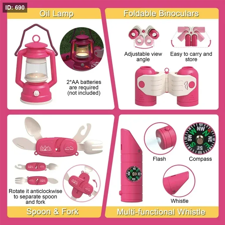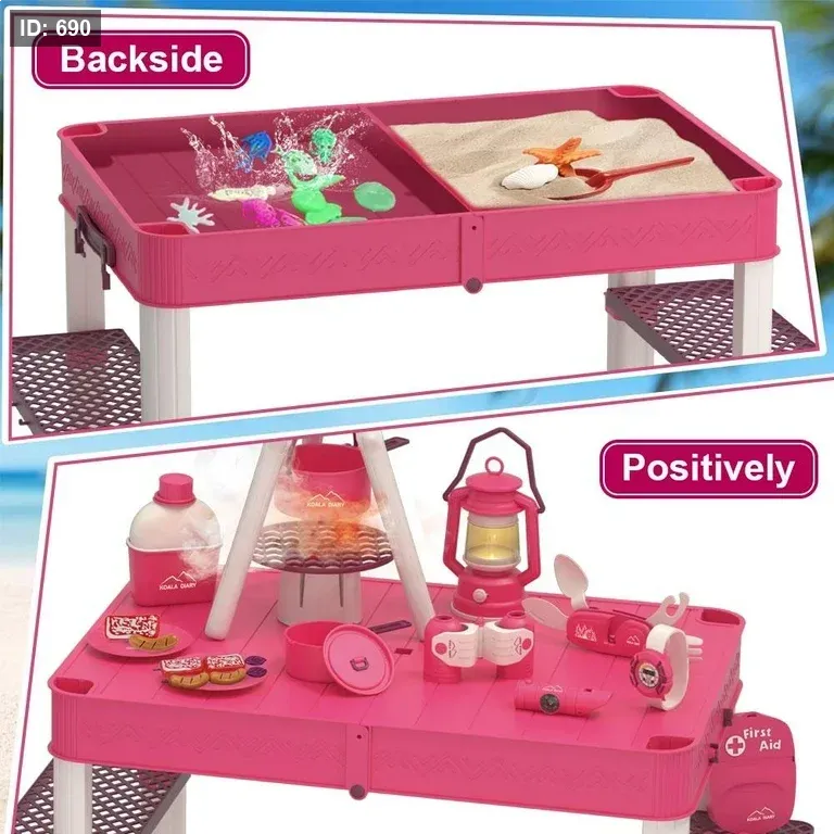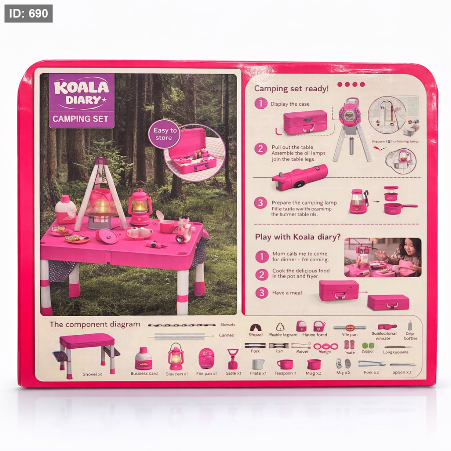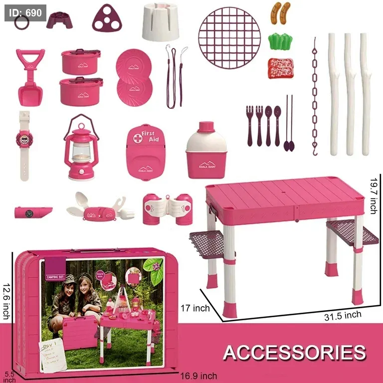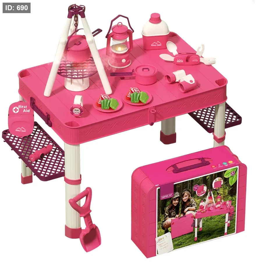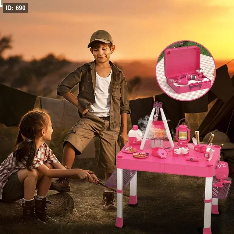 الحقيبة تتحول بسهولة إلى طاولة تخييم مليئة بالأدوات ليعيش الطفل تجربة مغامرة ممتعة.
