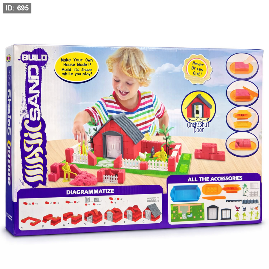 يستطيع الطفل تشكيل الطوب وبناء البيت خطوة بخطوة، مما يساعد على تنمية الخيال، الإبداع، والمهارات الحركية الدقيقة بطريقة ممتعة وآمنة.