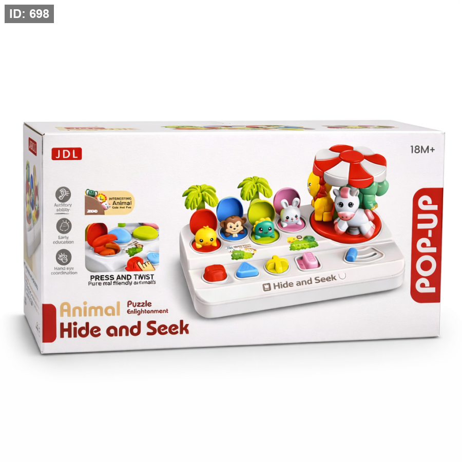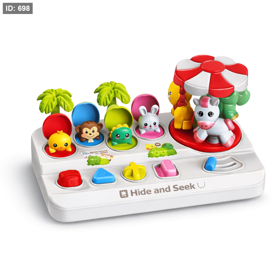 يقوم الطفل بالضغط على الأزرار أو تحريك المفاتيح لتظهر الحيوانات اللطيفة من أماكنها، مما يجعل وقت اللعب مليئًا بالمرح والتشويق.