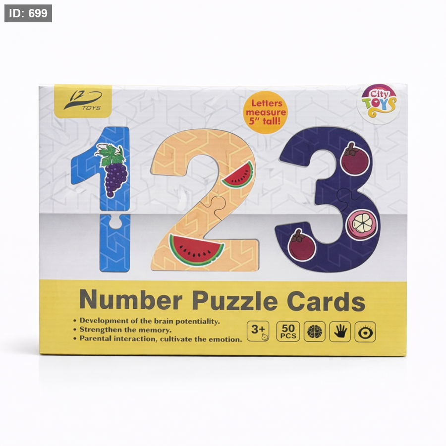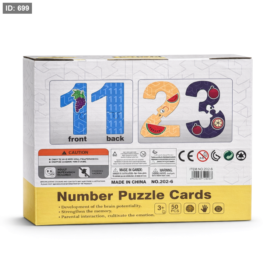 تحتوي اللعبة على بطاقات بازل كبيرة وملونة تمثل الأرقام مع صور فواكه جذابة، مما يساعد الطفل على التعرف على الأرقام وربطها بالأشكال والصور بطريقة سهلة وممتعة.
