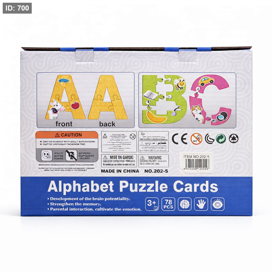 تحتوي اللعبة على بطاقات كبيرة وملونة تمثل الحروف مع صور جذابة مرتبطة بكل حرف، مما يساعد الطفل على التعرف على الحروف وربطها بالأشياء والصور بطريقة ممتعة تساعد على التعلم السريع.