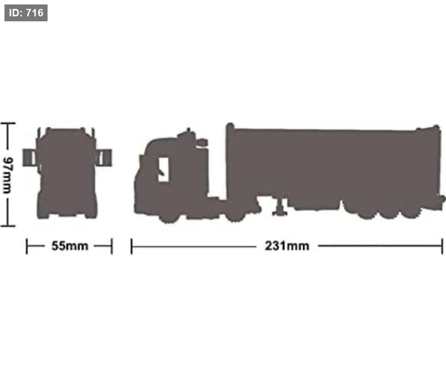 تتميز الشاحنة بتصميم يحاكي شاحنات نقل الحاويات الحقيقية مع مقطورة كبيرة وتفاصيل دقيقة في العجلات والهيكل، مما يجعلها إضافة رائعة لعشاق المركبات والشاحنات.