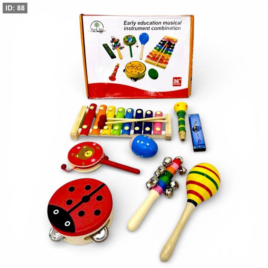 مجموعة متكاملة تجمع بين الخراخيش الخشبية، الطبلات الصغيرة، وأدوات موسيقية مصممة خصيصاً للأطفال.